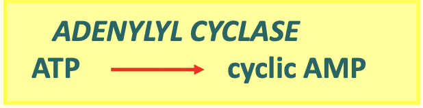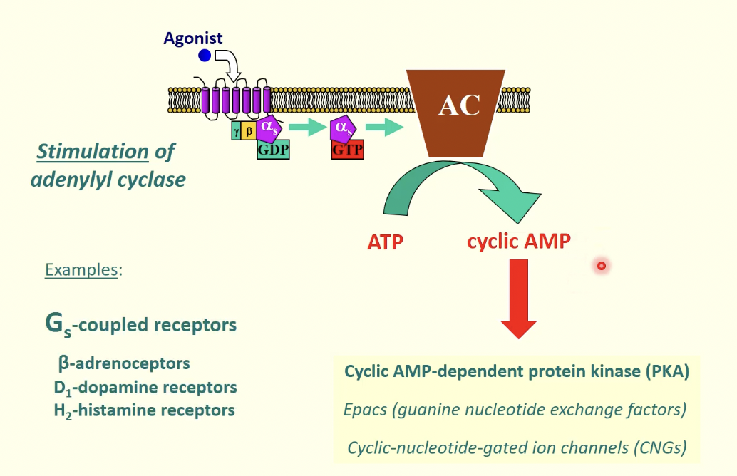 Describe how adenylyl cyclase is stimulated to produce cAMP (7)