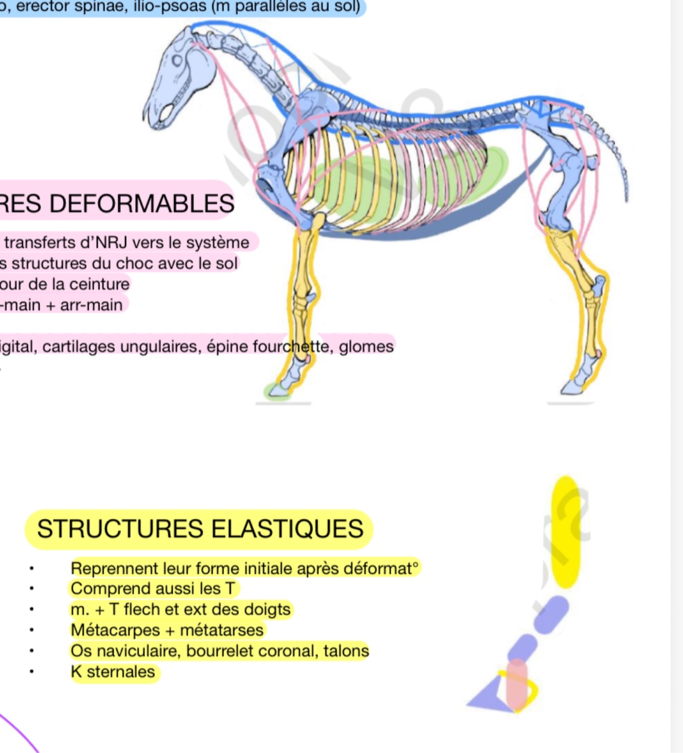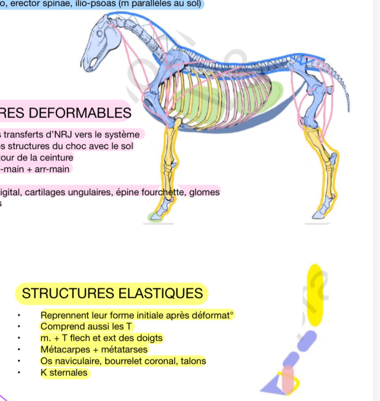 Quels sont les muscles associés aux structures élastiques ?