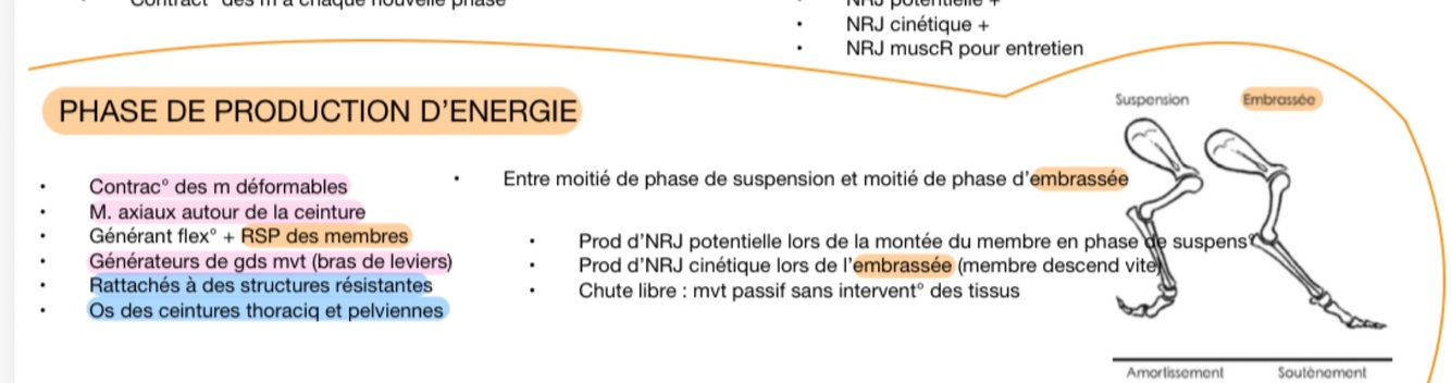 Quels sont les types d’énergie produite lors de la phase de production d’énergie ? À quel mouvement correspond-t-elle ?