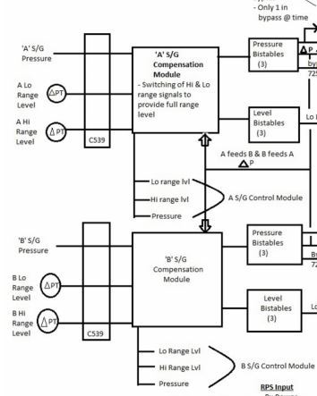 Also provides the output for OTSG pressure and calculates DP between steam generators for vector signal.