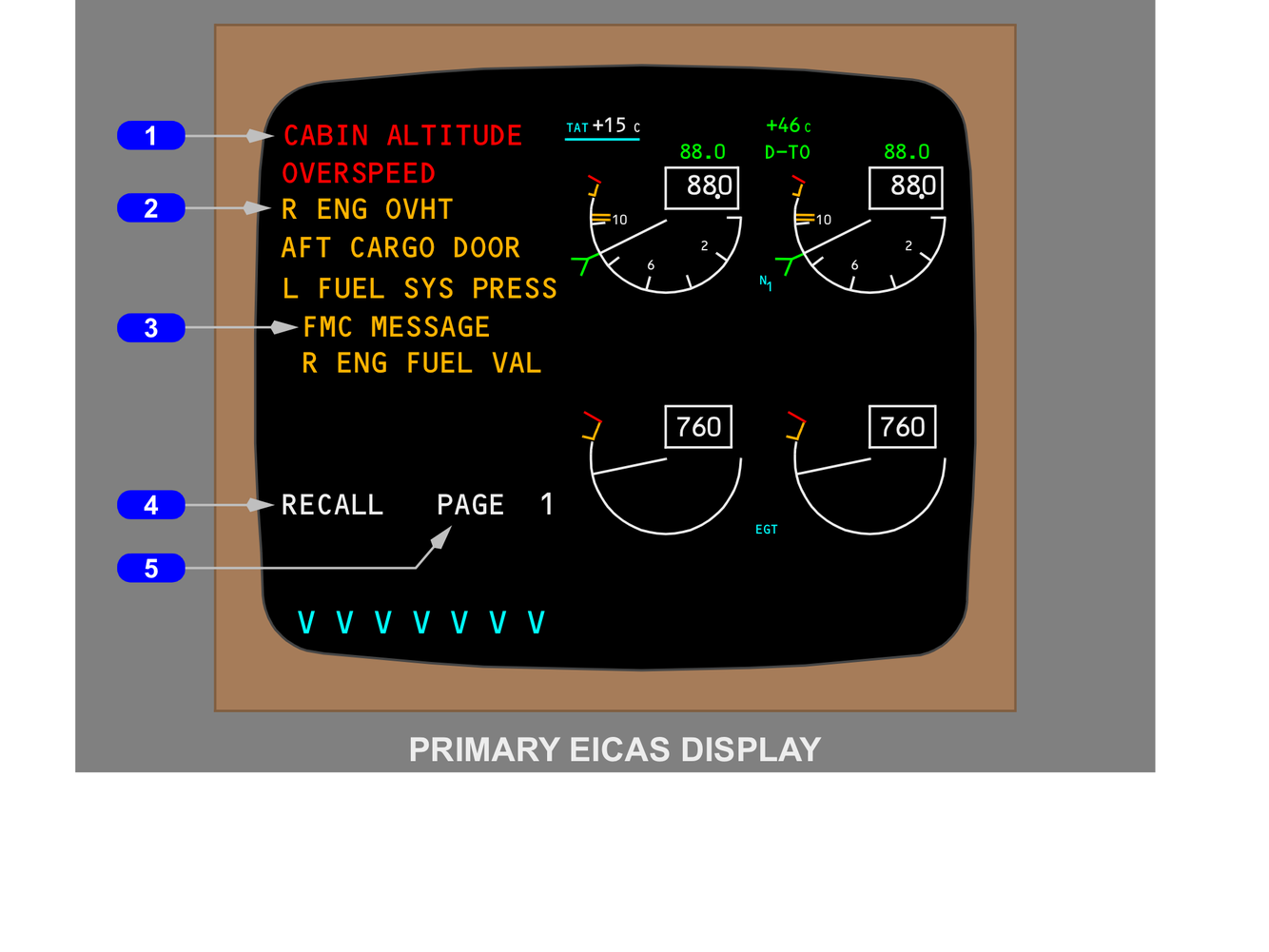 <em>EICAS still displayed but no bell or CAUTION light</em>