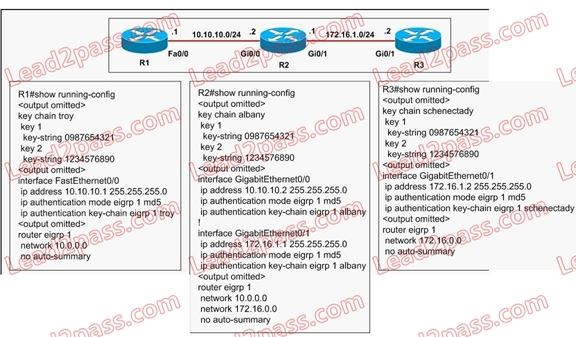 A. Because the key chain names do not match, router R1 will not be able to ping routers R2 and R3