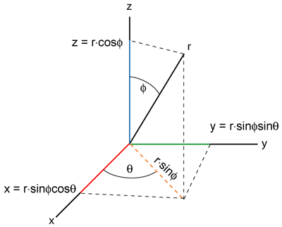 x = r sin(ϕ)cos(θ), y = r sin(ϕ)sin(θ),