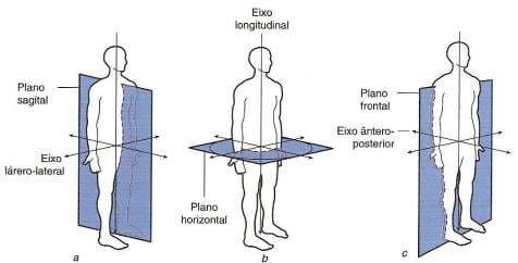 Na posição anatômica, o corpo é referenciado de acordo com três planos mutuamente ortogonais: Sagital, coronal e transversal.