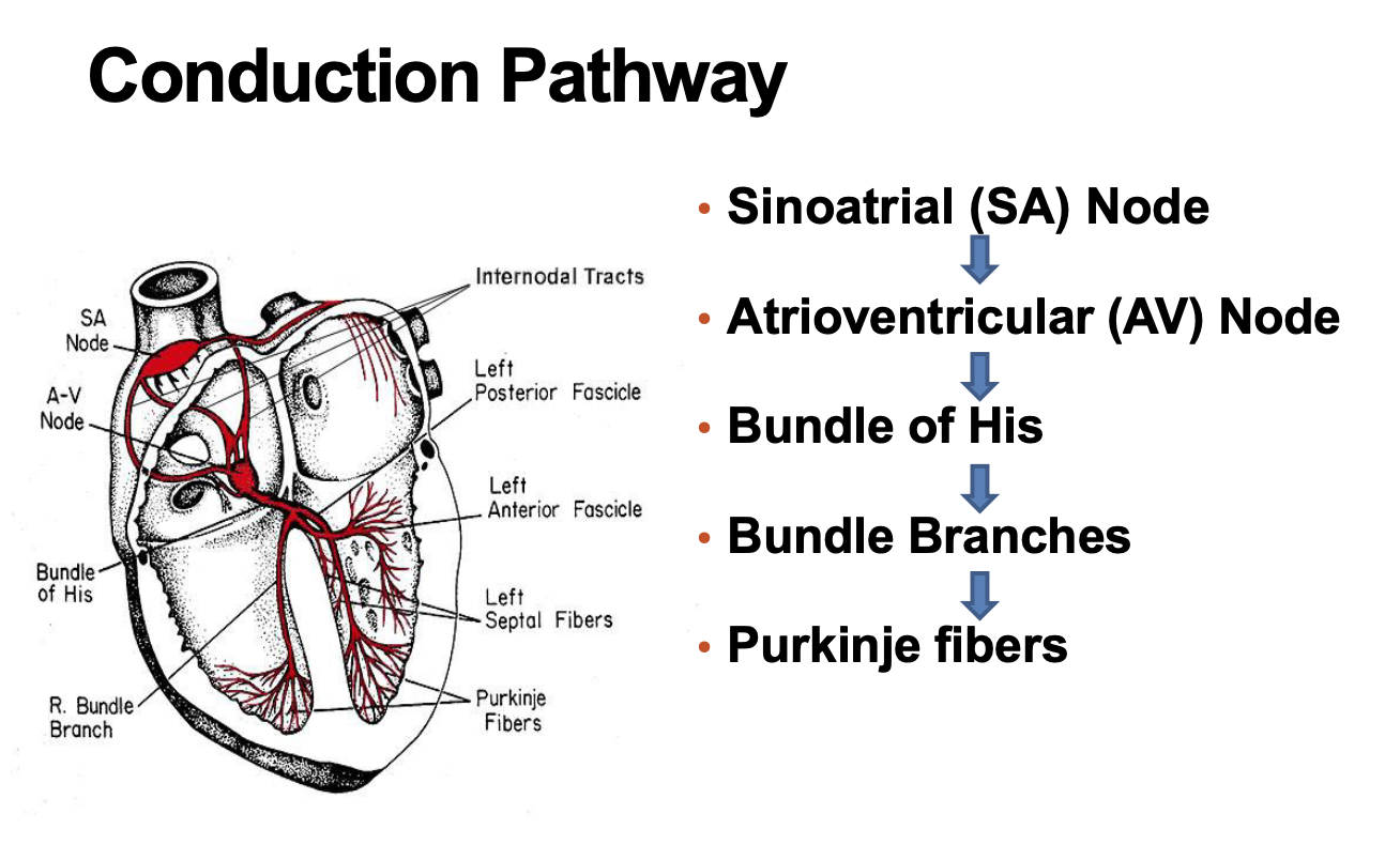 SA Node > AV Node > Bundle of His > Bundle Branches > Purkinje Fibers