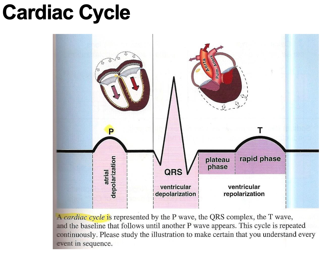 What does the “QRS” complex indicate on the cardiac cycle?