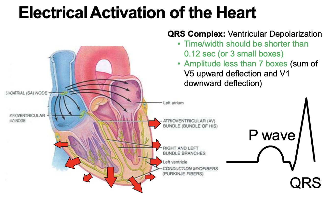 What is a normal value & amplitude for the QRS complex?