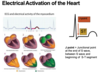 The direction of depolarization as it moves through the heart.