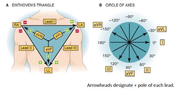 Lead II (60°) and V1 (toward right heart)
