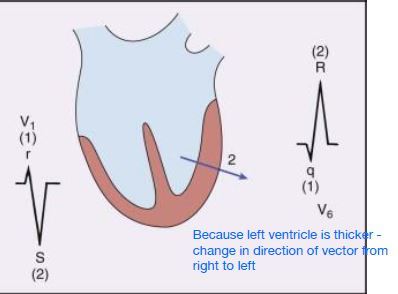 As lateral wall left ventricular (LV) is depolarized, electrical forces of thick LV outweigh RV and depolarization is directed toward that side