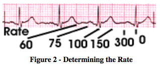 ex: Rate around 90-95 (under 100 b/c just under 3 large boxes separate QRS complexes)