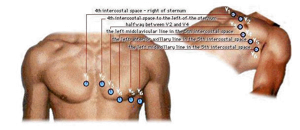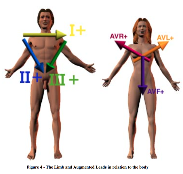 Augmented leads: AVR, AVL, AVF (on right ankle)