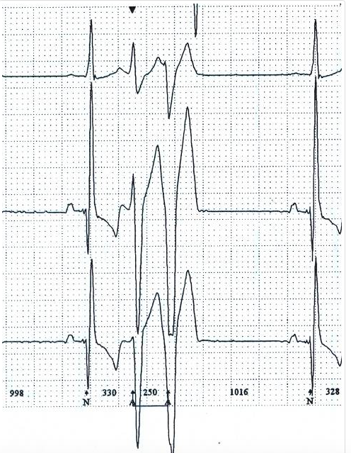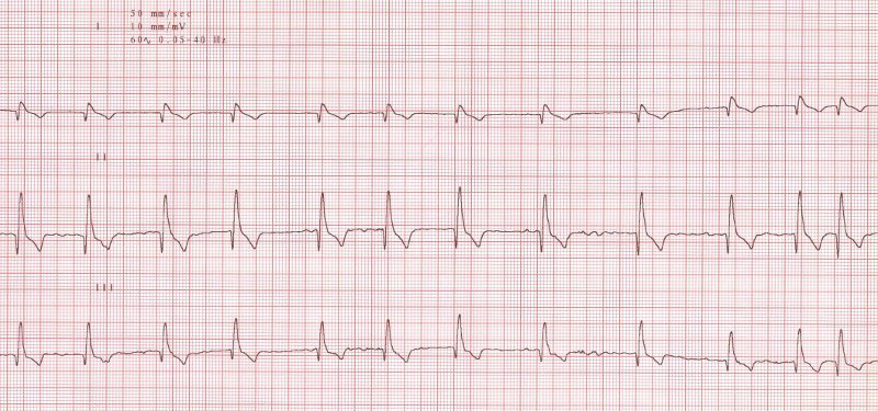 The correct answer is mexiletine. The Holter ECG shows a couplet of ventricular premature complexes. If frequent ventricular ectopy is seen, particularly with runs or R-on-T episodes, treatment is advised with oral ventricular antiarrhythmics. Mexiletine is an oral class I antiarrhythmic that is well-tolerated in dogs. Pimobendan improves systolic function, but does not treat arrhythmias. Amlodipine is a calcium channel blocker used for patients with systemic hypertension. Diltiazem is used for supraventricular tachycardias to slow conduction down the AV node. Furosemide is a diuretic used in the treatment of heart failure, it does not have antiarrhythmic properties.