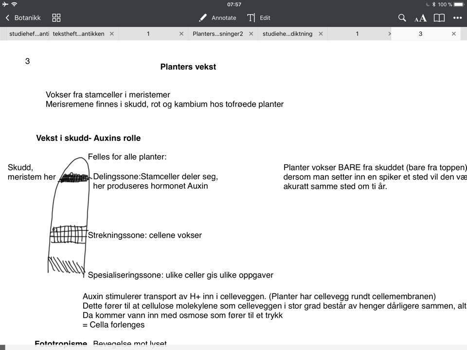 Fototropisme: Auxin transporteres til skyggesiden. og cellene strekkes der ved at Auxin stimulerer til transport av H+ inn i celleveggen. Dette fører til at cellulosemolekylene henger dårligere sammen. Det blir da mindre tett og vann kommer inn ved osmose. =cellen forlenges