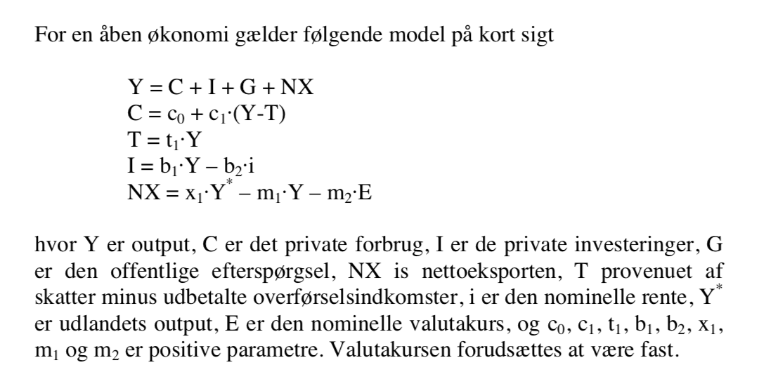 a. Forklar ved hjælp af et relevant diagram, hvad der sker med output og inflationen på kort henholdsvis mellemlang sigt. Hvad sker der med den nominelle rente?