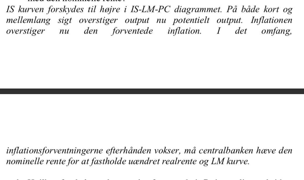 inflationsforventningerne efterhånden vokser, må centralbanken hæve den nominelle rente for at fastholde uændret realrente og LM kurve.