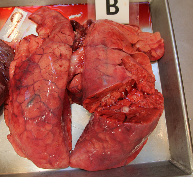 Patoanatomisk diagnose: Kronisk, lobulær, mukopurulent bronkopneumoni