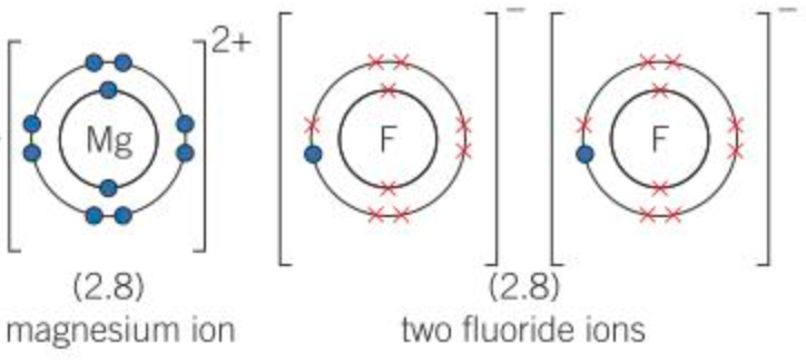 Draw a dot-and-cross diagram of magnesium fluoride.