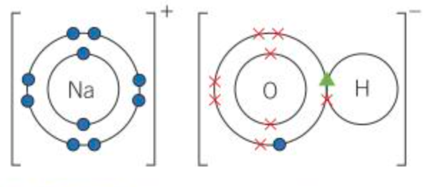 Draw a dot-and-cross diagram of sodium hydroxide.