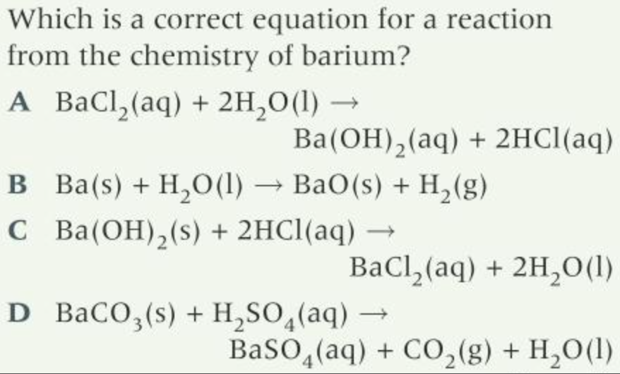A: Ba(OH)2 is insoluble so (s) not (aq). Barium too electropositive for its chloride to be hydrolysed