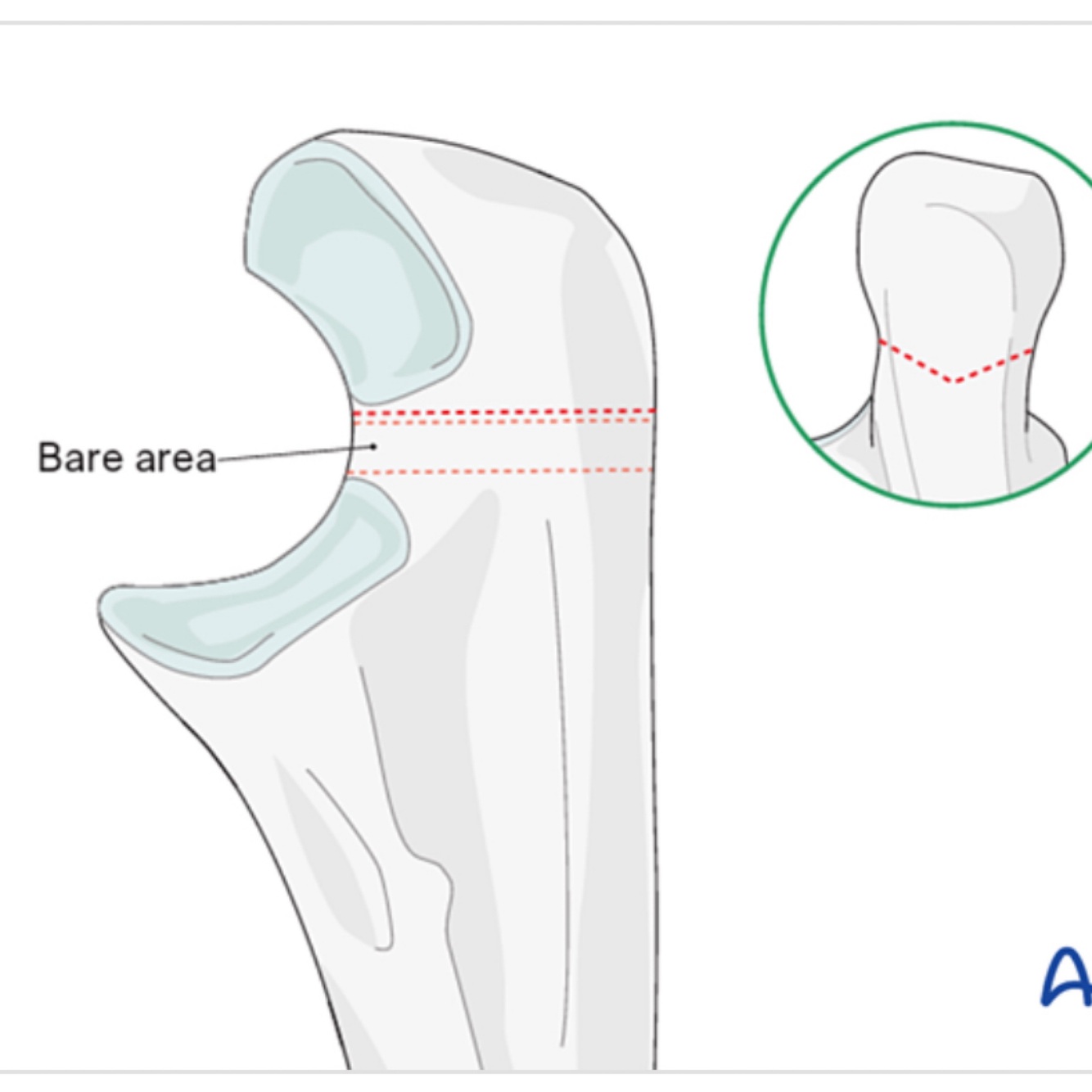 Non-articular portion of the ulna between the olecranon articular facet and the coronoid articular facet. Located ~2cm from triceps insertion, between the tendons of FCU/ECU Important because you aim for there when doing olecranon osteotomies