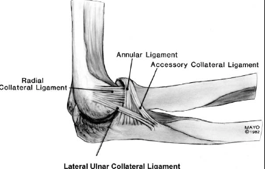 Transverse bundle of the ulnar collateral ligament Because it doesn’t cross the elbow joint