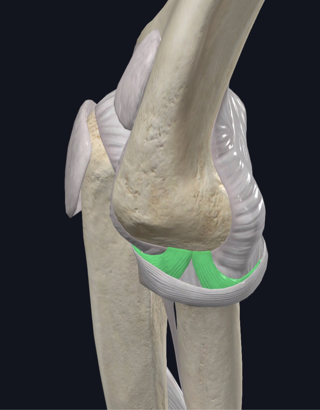 Accessory lateral collateral ligament - from the inferior margin of the annular ligament to the supinator crest