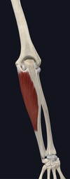 Distally, inserts into (blends with) the annular ligament above the equator of the radial head