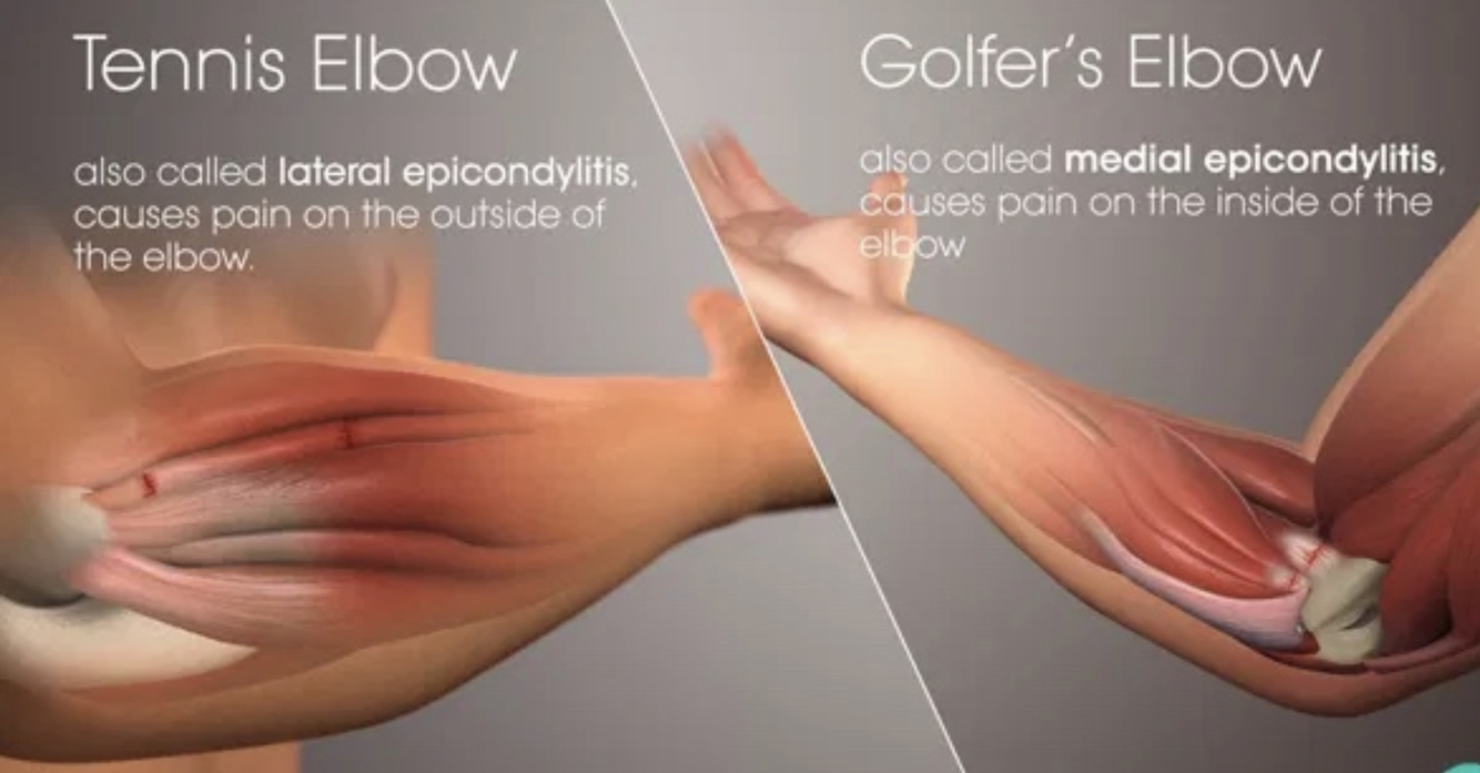 Medial or lateral epicondylitis (golfers / tennis elbow respectively)