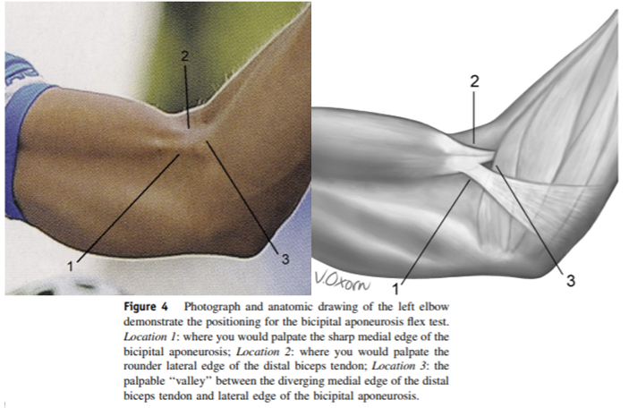 What are the special tests to evaluate for distal biceps tears?