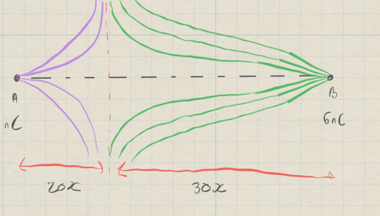 A +4 nc and a +6 nc charges have a distance of 50x