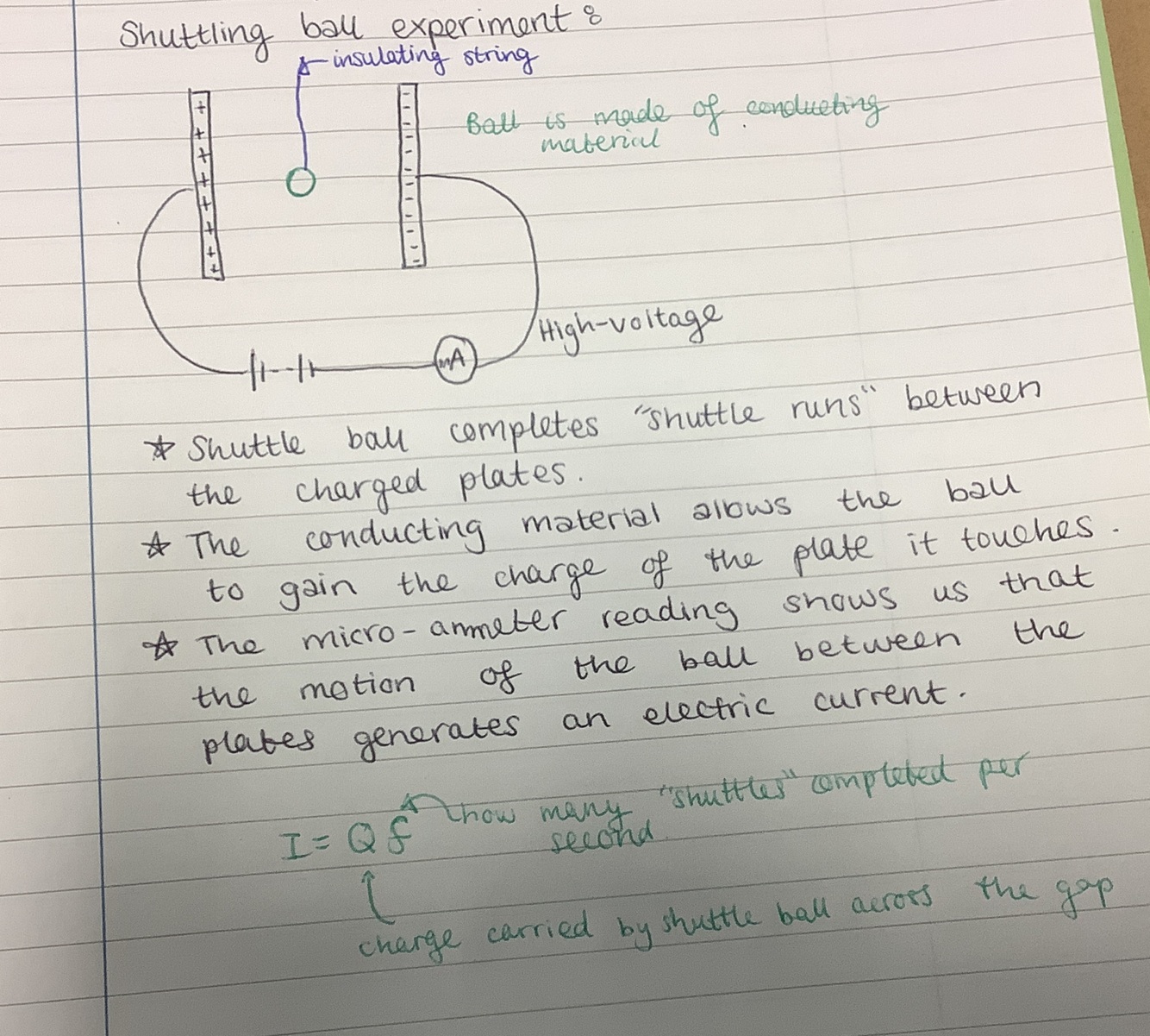 Draw a diagram of + describe a shuttling ball experiment