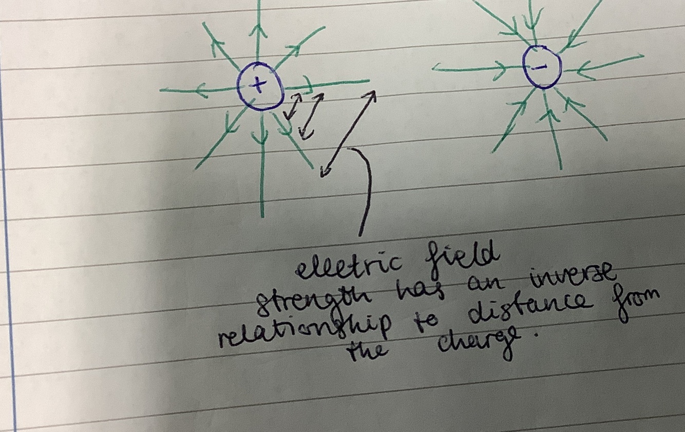 What is the relationship between electric field strength and distance from the charge