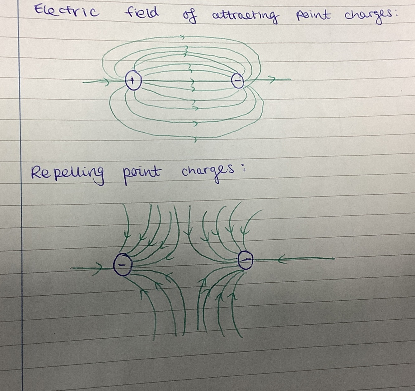 Diagram for the electric field of attracting/ repelling point charges
