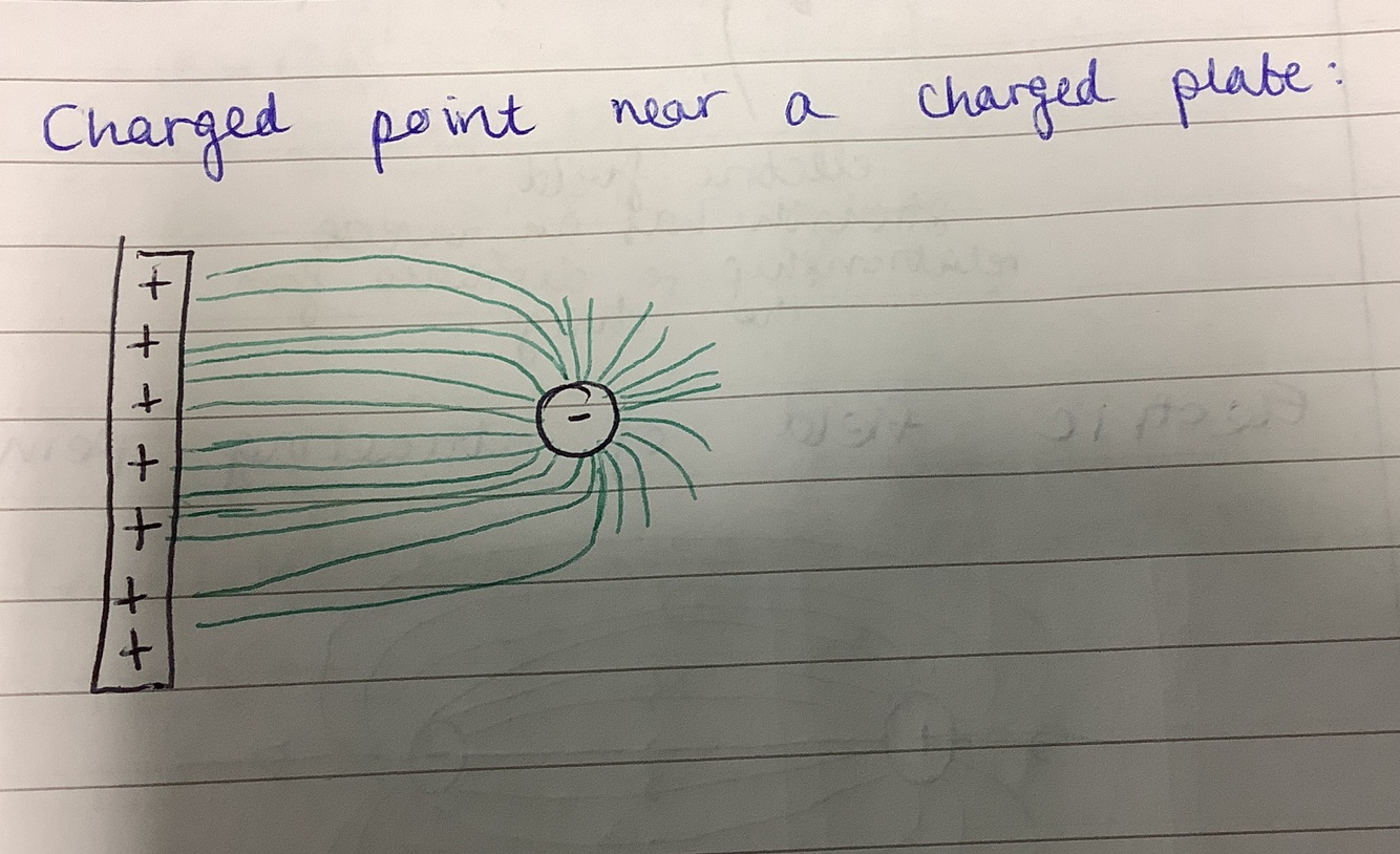 Diagram of a charged point near to an oppositely charged plate