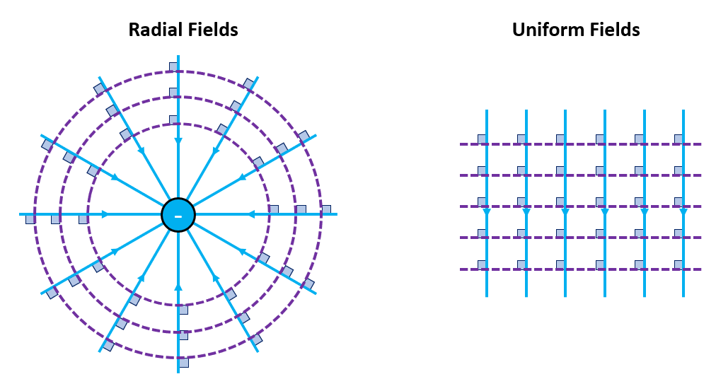 1. Radial field over a short distance 2. Field between 2 parallel plates