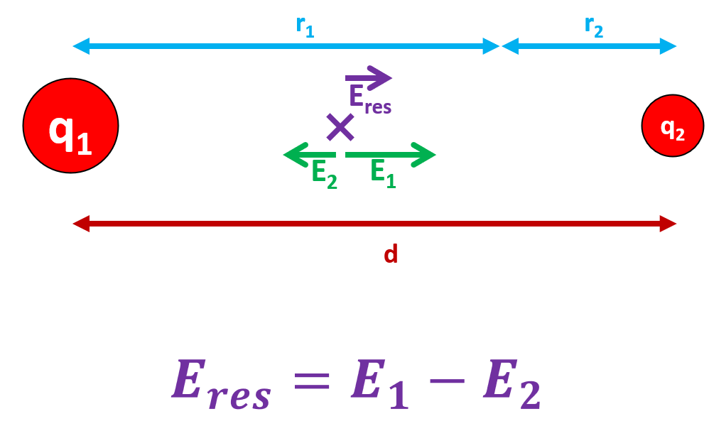How do you calculate the **neutral electric field strength (or force) point** between charges?