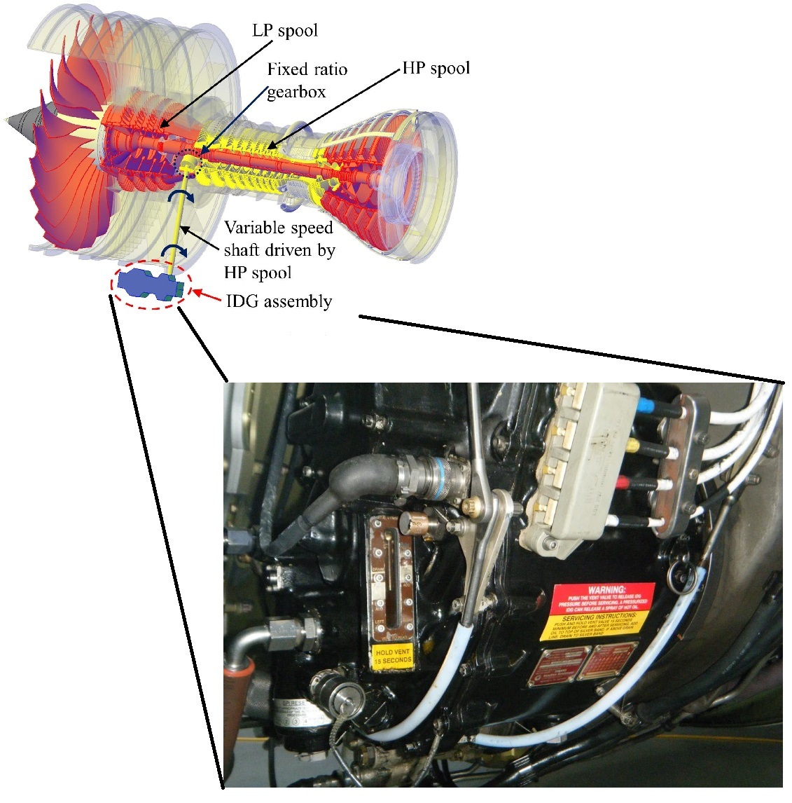 When the Generator Drive Disconnect Switch is placed to DISCONNECT, with the Engine Start Lever in Idle, A solenoid operated pawl mechanically interfaces with a worm-gear. The worm gear retracts the splined IDG drive shaft out of the gearbox for a complete de-coupling from engine rotation.