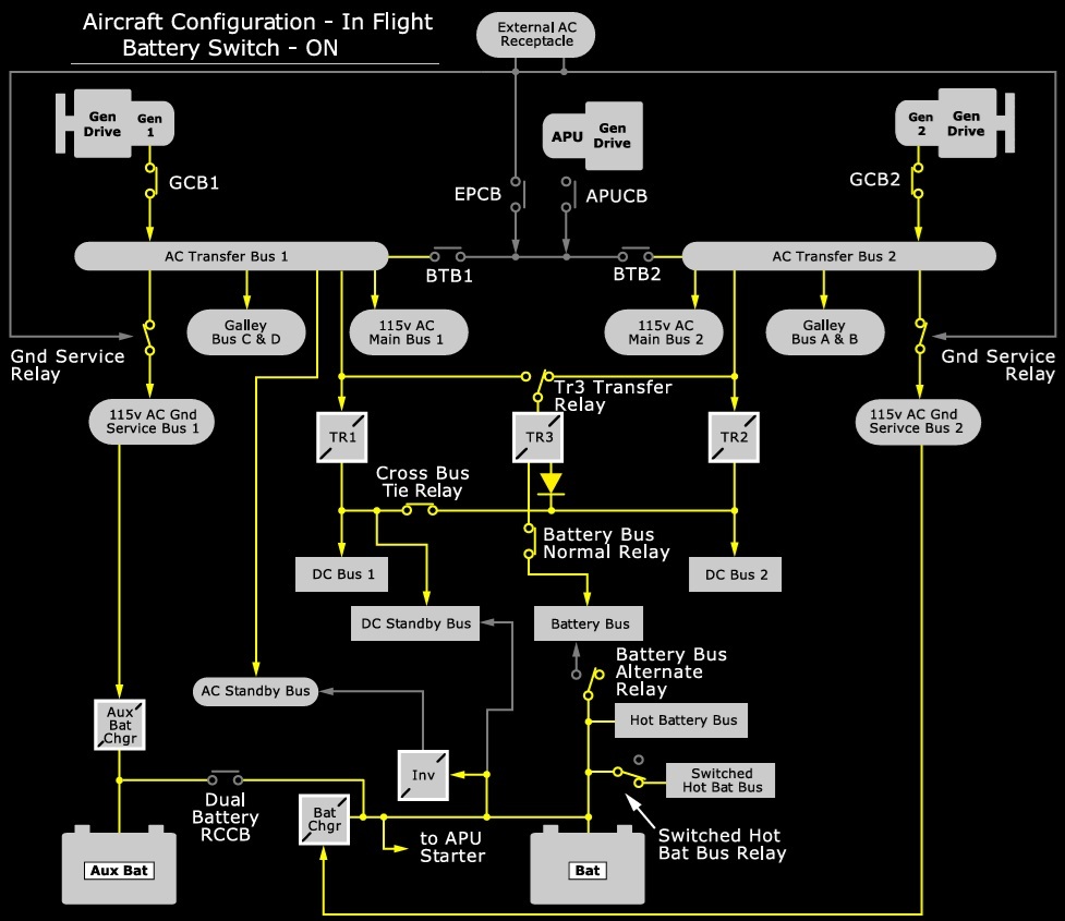 If the APU is either shutdown or fails, the IDG (engine generators) are automatically connected to their related transfer busses.