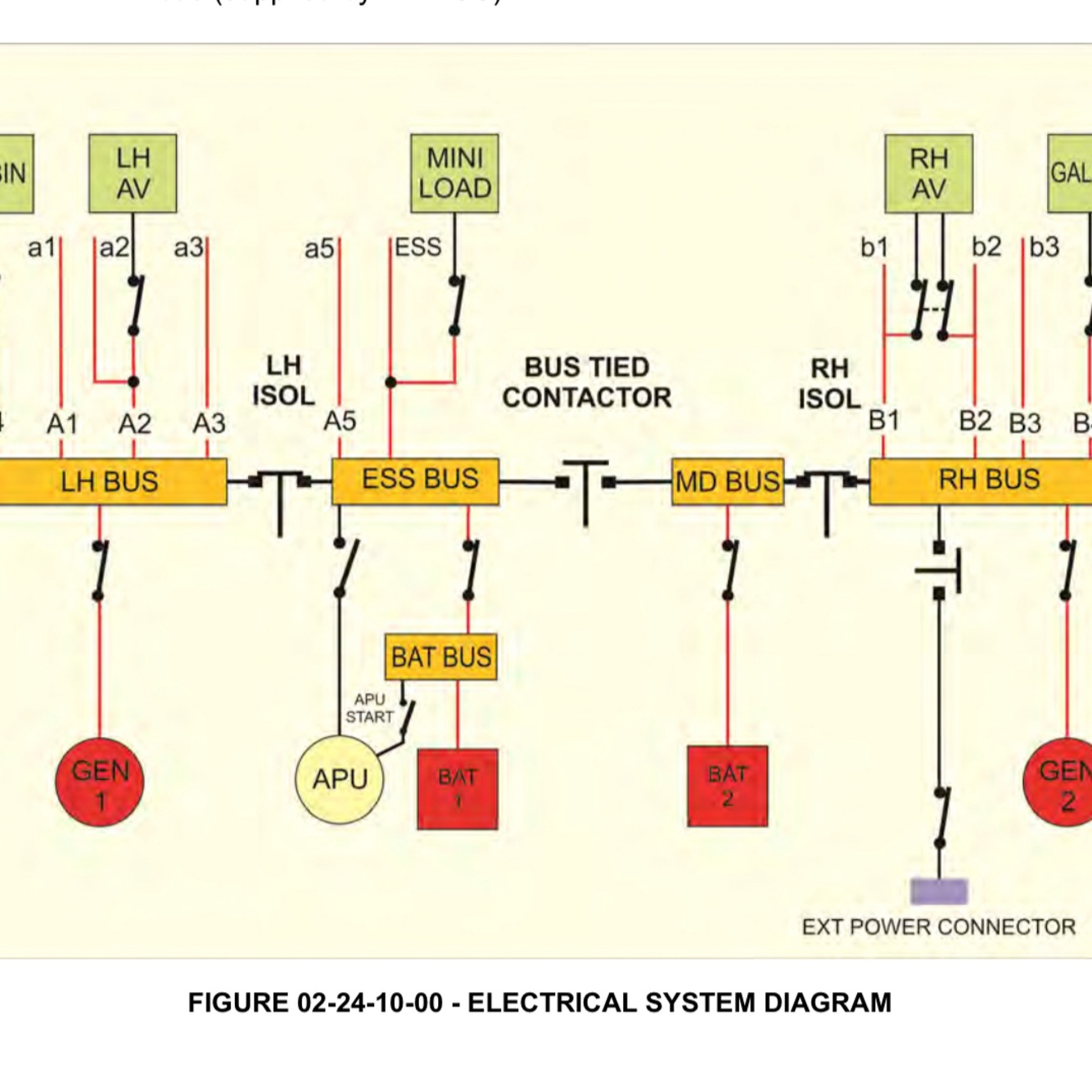 If LH engine fails, ESS and MEDIAN busses are untied.