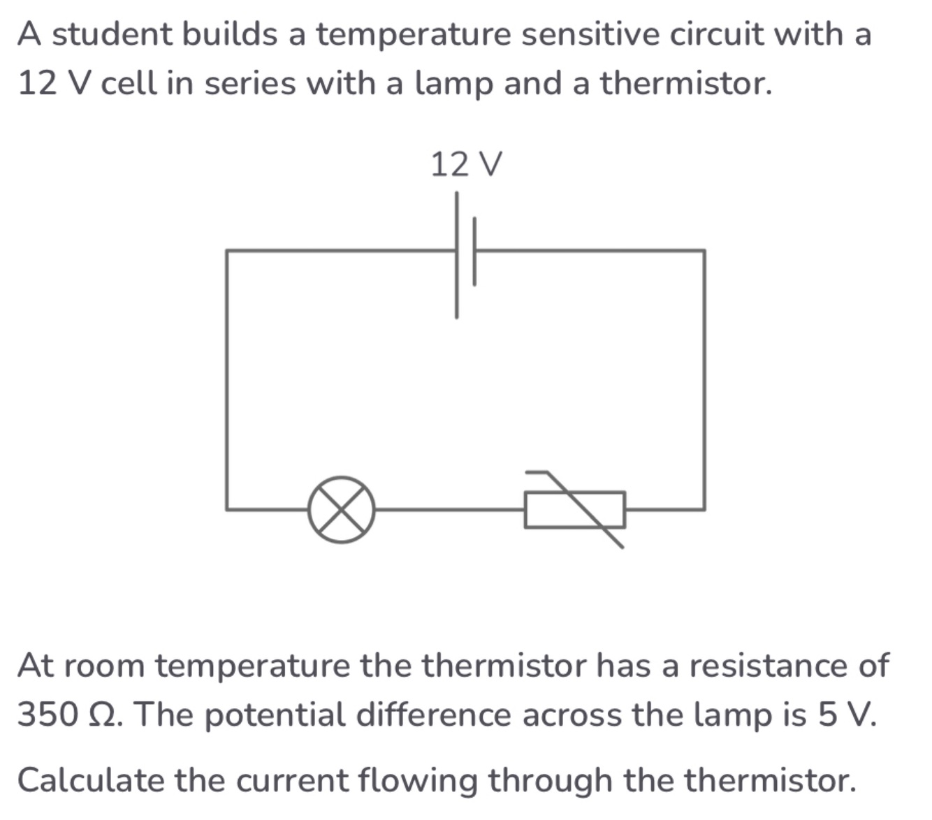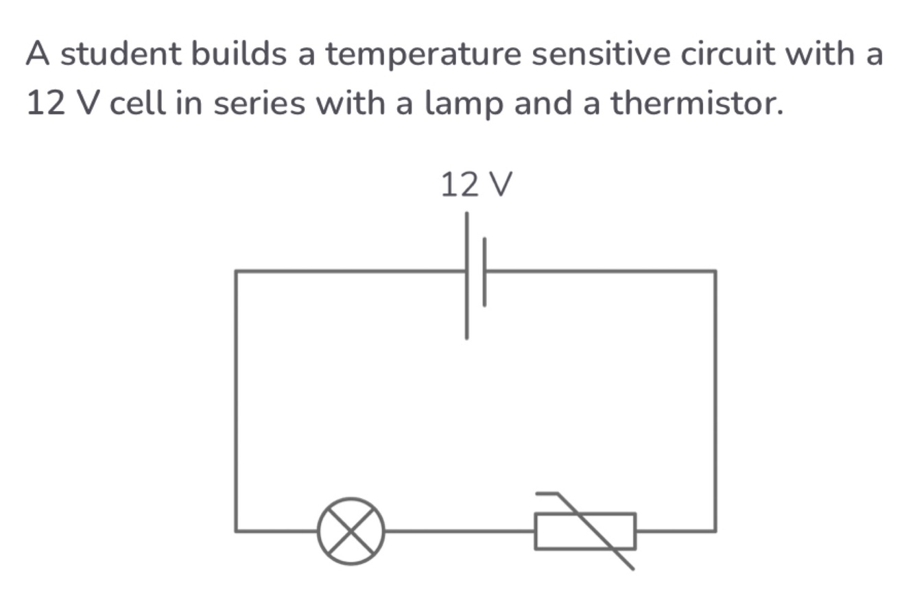 the student moves the circuit into a warmer room, describe what happens to the voltage across the lamp, you may assume the resistance of the lamp stays constant (3)