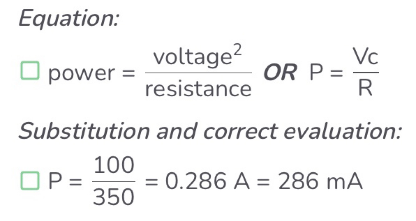 calculate the current through the 200Ω resistor, current = pd/resistance