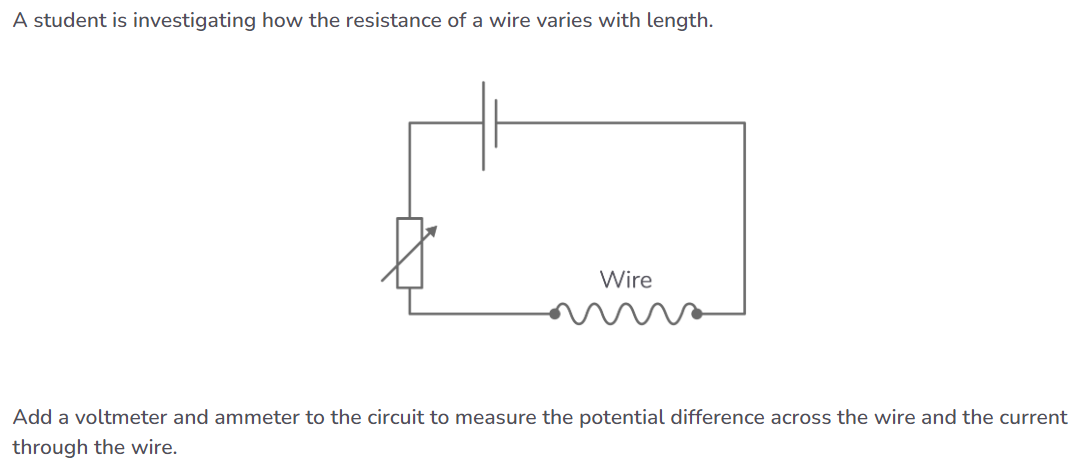 a student is investigating how the resistance of a wire varies with length, describe how the student could use the circuit to identify the relationship between length and resistance (6)