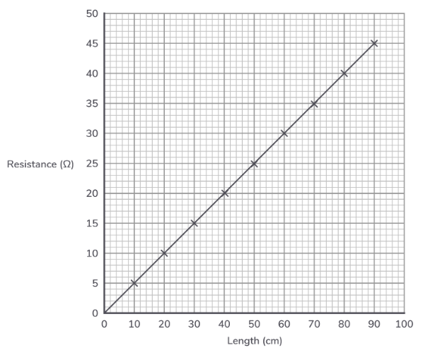 the student concludes that resistance is directly proportional to the length of the wire, using data from the graph, show that resistance is directly proportional to length (3)