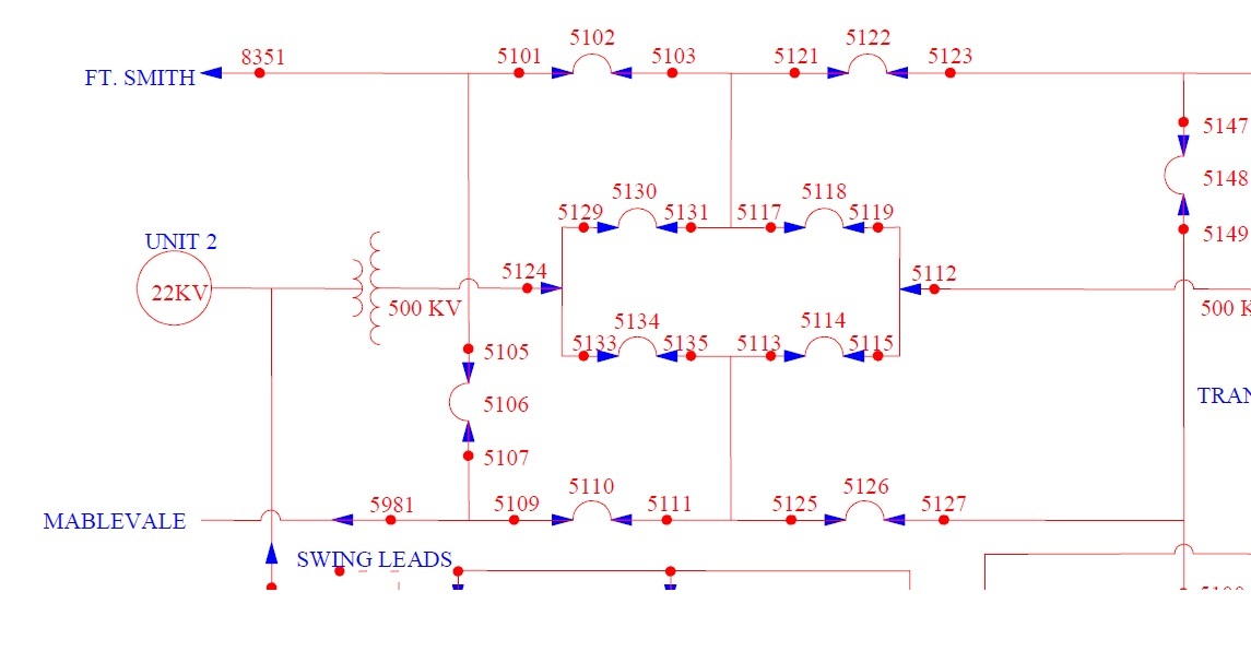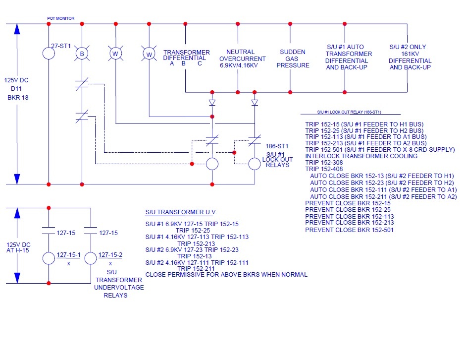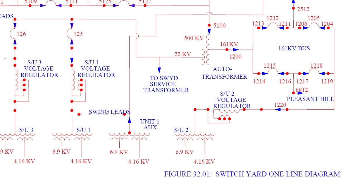 -The autotransformer consists of 3 windings. The primary winding is 500 KV, the secondary winding supplies 161 KV Ring bus to SU2, and the 3rd 22 KV tertiary winding supplies SU1 and SU3 provides DC control power to the switchyard.