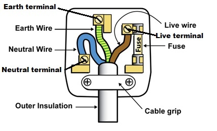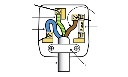 Green/Yellow = Earth wire. Electricity only travels through this if the case comes into contact with the live wire