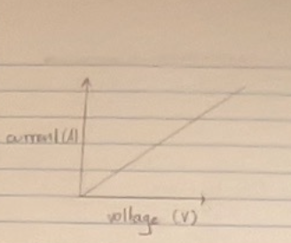 has a constant resistance; its current-voltage characteristic is a straight line graph, so that the current through it is directly proportional to the voltage across it. can keep the temp. constant, so the current can easily increase as the voltage increases (constant resistance)