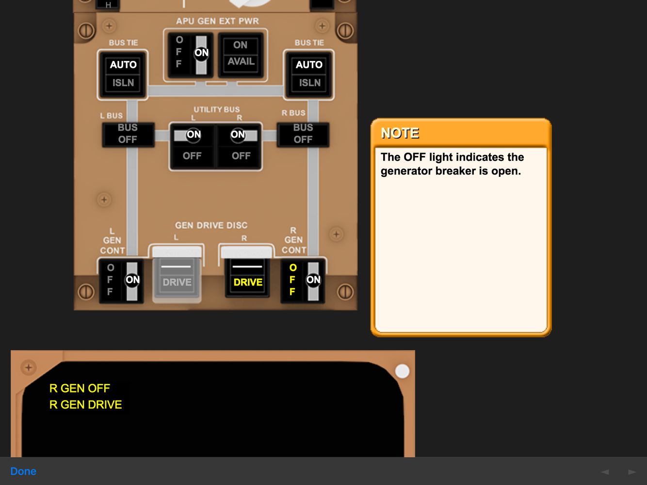 Significance of OFF light on L/R GEN CONT?