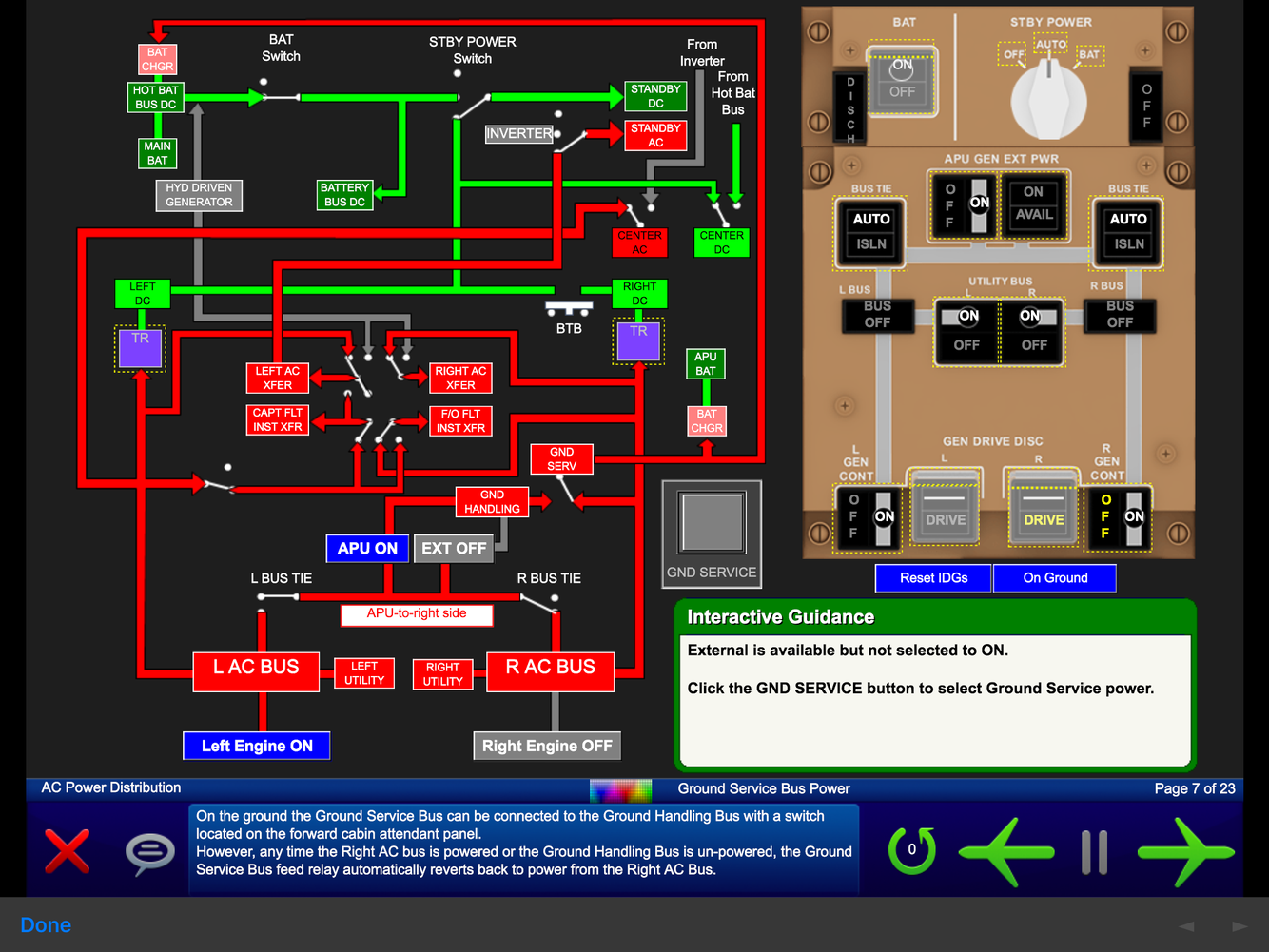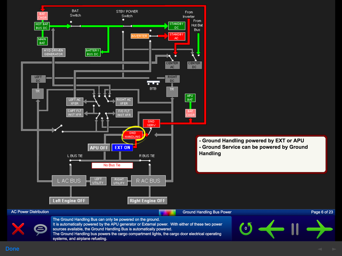 Any time R AC BUS is powered or GND HANDLING BUS is un-powered, the GND SERVICE BUS auto-reverts back to R AC BUS