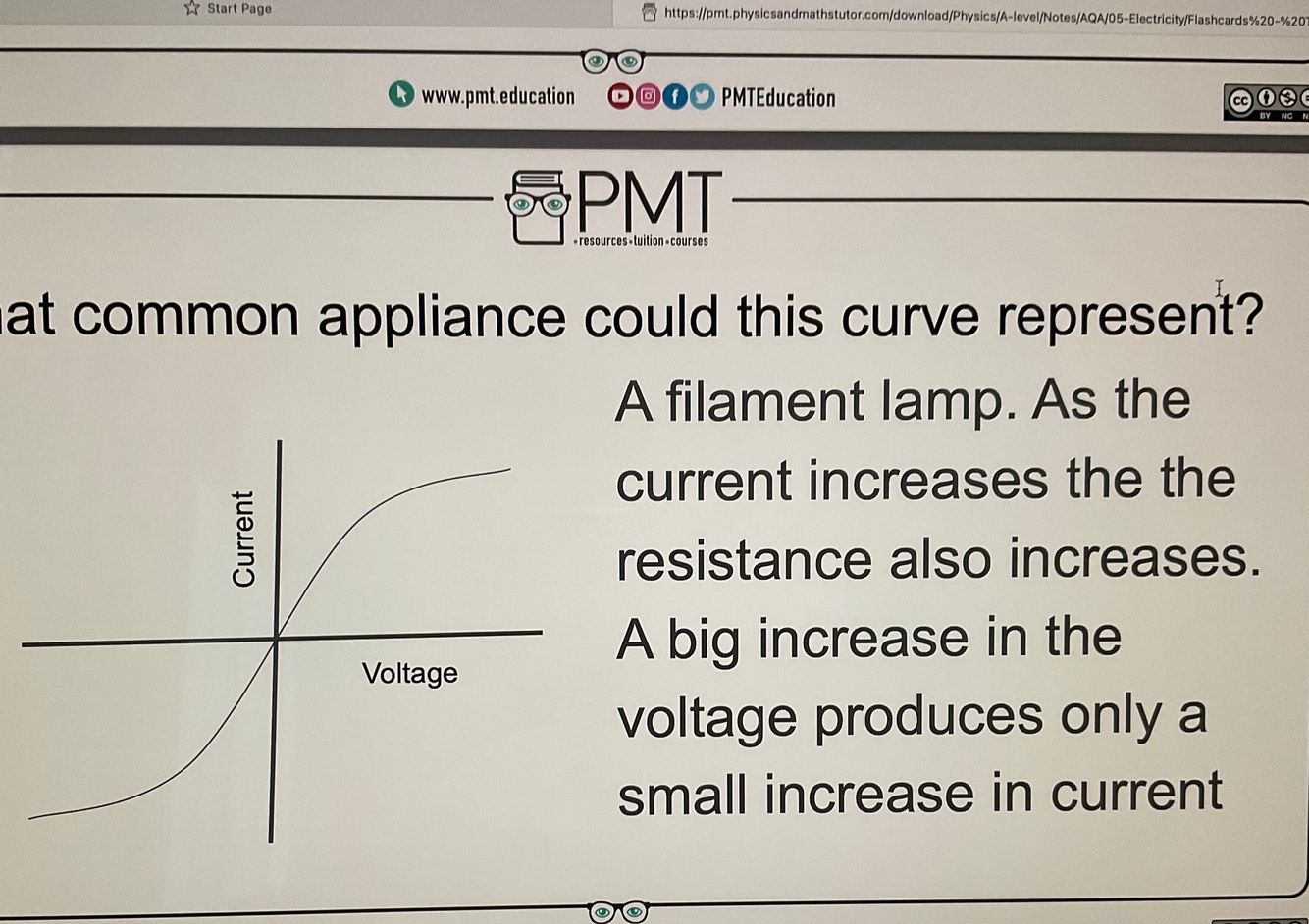 Why does the current increasing on a a filament lamp cause an increase in resistance